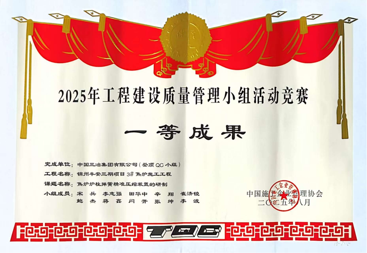 近日,2025年度国家级QC成果大赛圆满落幕,中国三冶凭借扎实的质量管理实践与突破性创新成果,在两项国家级赛事中斩获佳绩。其中,在中建协成果大赛中,一举摘得一等奖2项、二等奖8项;在中施企协赛事中,赢得一等奖2项、二等奖1项。这份成绩单的背后,是中国三冶质量管理水平从"量的积累"到"质的飞跃"的生动印证,更是三冶人践行“自主创新的引领作用”,以“问题导向的工作思维”突破行业瓶颈的缩影。